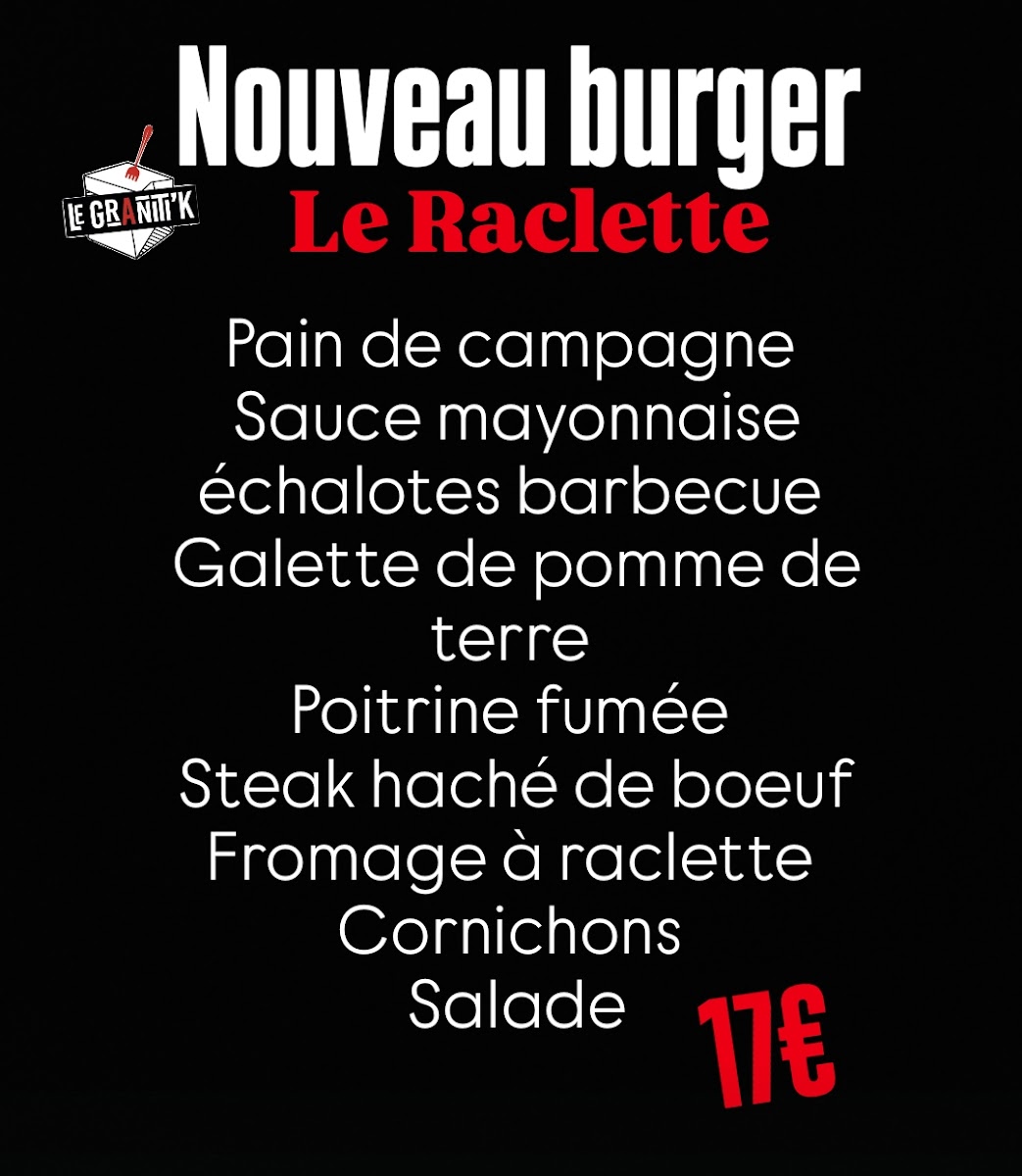 In conclusion, Le Graniti'k's menu brings together classic comfort food with an emphasis on quality ingredients, whether you're in the mood for a juicy burger, crispy fish, or a satisfying steak. With well-priced dishes and the option for a homemade dessert or ice cream to round off the meal, this restaurant proves to be a delightful spot for both locals and visitors alike.
